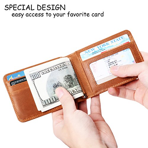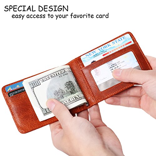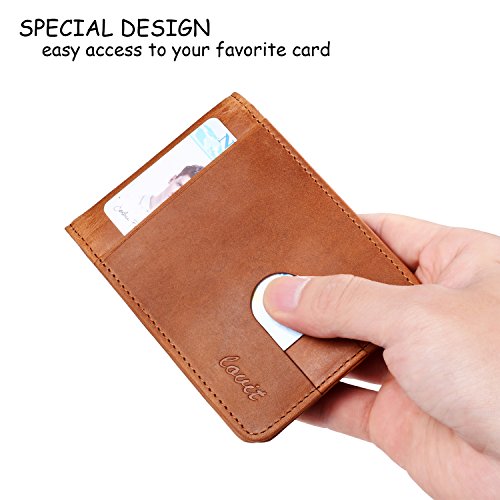 【SPECIFICATION】 Outer Material: finest genuine Leather Inner Material: Compact Fabric SIZE:L(4 4/8)*W(3 3/8)*H(3/8)inches(folded, empty) WEIGHT:0.18 lb