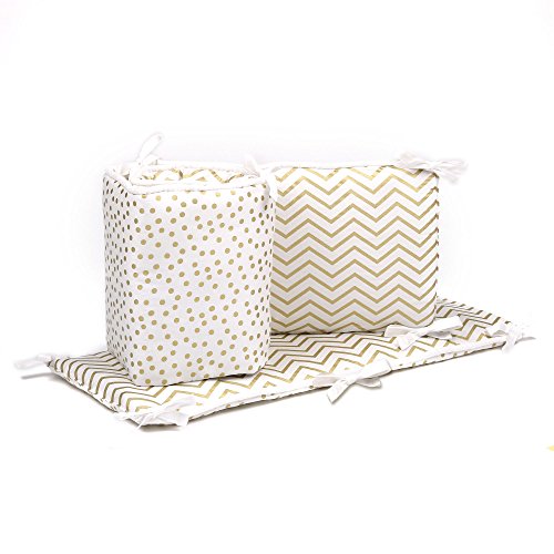-. Title : Gold Dot and Chevron 5 Piece Baby Crib Bedding with Bumper by The Peanut Shell