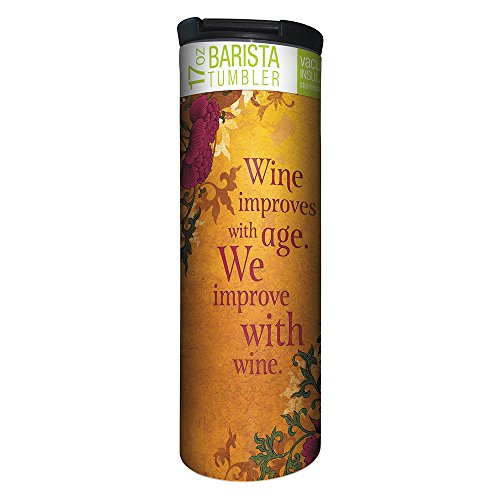 Tree-Free Greetings Improve with Wine Vacuum Insulated Travel Coffee Tumbler, 17 Ounce Stainless Steel Mug, Funny Wine Lover Gift (BT21717)