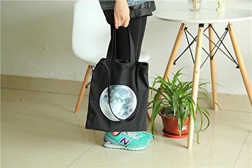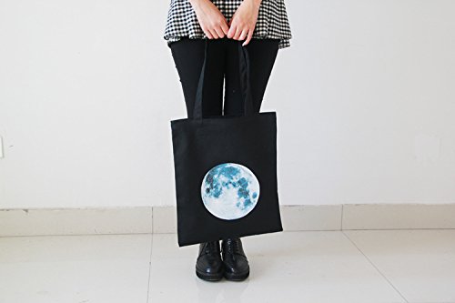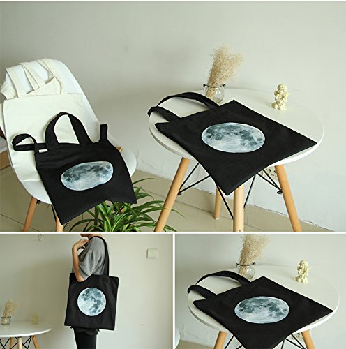 -. Feature : 【PORTABLE FOLDABLE DIMENSIONS】Black Universe: 12.99 x 15.75 (inch), you can easily fold it and put into your bag when not in use. / 【PREMIUM MATERIAL & UNIQUE STYLE】This canvas tote Bag is made of High-quality Pure Cotton 12A Canvas Fabric. It's Safe, Non-toxic, Environmentally Friendly, Wear-Resistant, Durable, Long-lasting. Black Moon Pattern will make your bag Unique and Personalized. / 【HEAVY DUTY & LARGE CAPACITY】This bag can carry more items with the Widen and Thicken Belts and Handles. Your Books, Magazines, Cellphone, iPad and Tablet all can be put into it. It's Strong, Firm, and Not easy to break. / 【EXTRA POCKET INSIDE】You can put pens, keys, napkin, earphone, cables, eyeglasses, and some small items with the Thoughtful Pocket Inside. / 【MULTIUSE SHOPPING BAG & SCHOOL BAG & BEACH BAG】This bag can be used as a tote, handbag, and shoulder bag with the Special Designed Double Different Handles. And you can use it as a Shopping Bag, School Bag, and Beach Bag when in need.