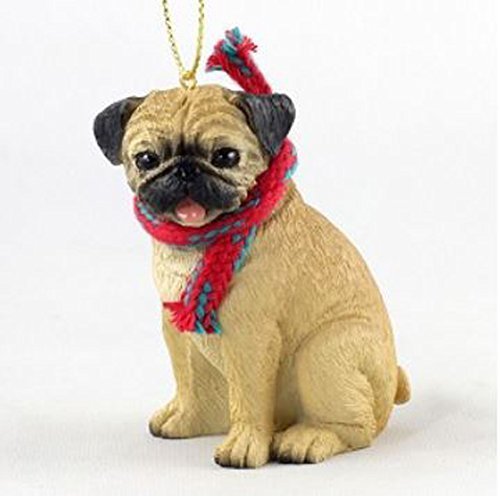 Pug (Fawn) with Scarf Christmas Ornament (Large 3 inch version) Dog