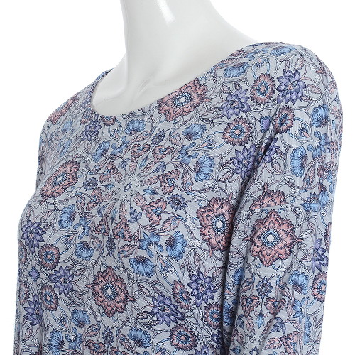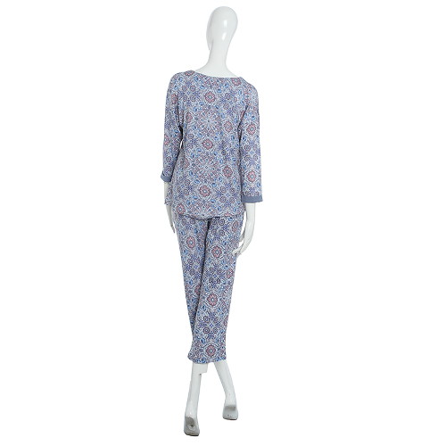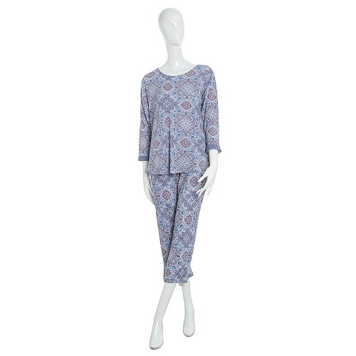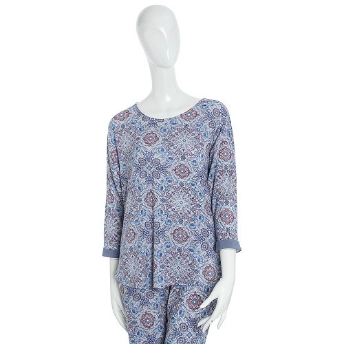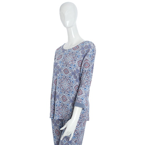레이온 소재의 슬러브 기하학나염 여성 이지웨어 상,하의 세트제품 입니다.