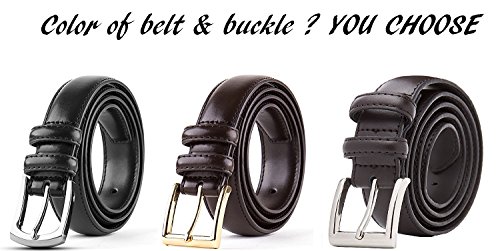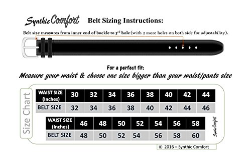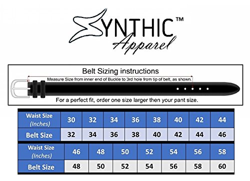 -. Feature : 3 STYLES & 15 SIZES AVAILABLE TO CHOOSE: Color 1) Black belt with silver finish feature-edge buckle, Color 2) Brown belt with golden finish buckle, Color 3) Brown belt with silver nickel buckle - Synthic Apparel belts are available from size 32 to size 60, to include regular men's sizes plus big & tall sizes, in that way every men can find their correct size. / "MAKE SURE TO ORDER 1 SIZE BIGGER THAN YOUR WAIST/PANTS SIZE" as a rule of thumb your belt size needs to be approx. 2 inches bigger than your actual waist size to allow adjustability, so measure your waist and choose the right belt for you, choosing 1 size bigger than your waist/pants size will generally be a "Comfort Fit", we have also attached a size chart with clear instructions - Belt Strap width dimensions is around 1.2 inches / Synthic Apparel black and brown leather-crafted belts are constructed from High Quality 100% genuine leather, which ensures the high quality and durability of the belt, for a longer endurance and better upholding, this makes also the "Synthic Comfort" Belts complement with any outfit to give you a sophisticated look and feel / Synthic Apparel Advanced process craft leather belts features a classic smooth finish and exquisite stunning stitching on top & bottom, with a double loop for added security, and a beautifully single prong buckle, so it goes great with dress uniform, or formal wear to be worn for everyday use, and for any casual occasions / ORDER WITH GRACE. Synthic Apparel exchange policy enables you to purchase without hesitation! 100% satisfaction guaranteed, 30 days' free exchange and return policy, so don't delay just add the Synthic Apparel Men's Classic Stitched Belt to cart and enjoy your purchase!