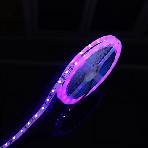 AMARS 5M/16.4ft 3528 SMD Blacklight UV/Ultraviolet 395nm-405nm LED Light Strip Fixtures DC 12V 60leds/m 300 LED Purple Light Bulb Lighting