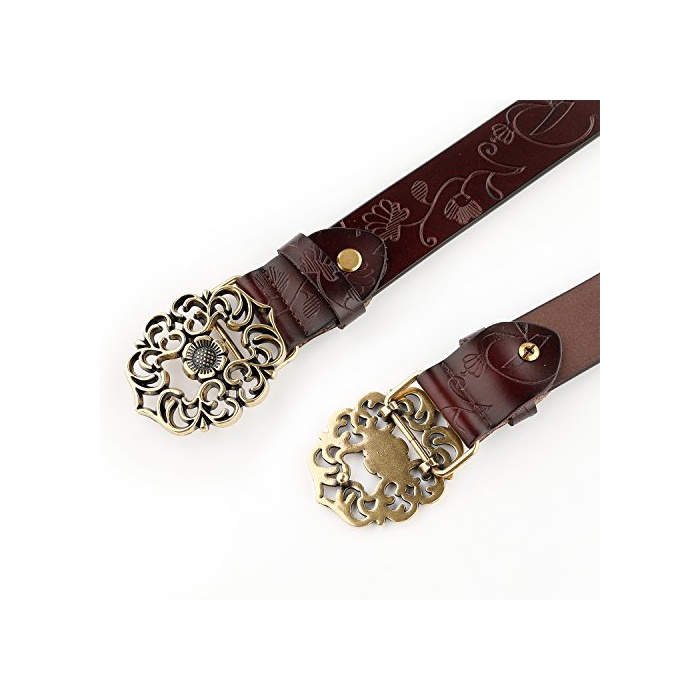 (쟈스 굿)JASGOOD 가죽 벨트 레이디스 벨트 민족풍 가벼워 매우 부드럽다 인기인 레더 벨트JA022 3color (Coffee)