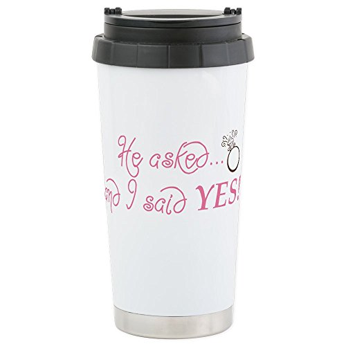 -. Title : CafePress - He asked and I said YES! Stainless Steel Travel Mu - Stainless Steel Travel Mug, Insulated 16 oz. Coffee Tumbler