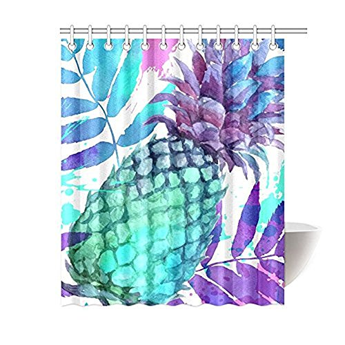 Tropical Fruit for Home, Vintage Pineapples Fabric Shower Curtain Bathroom Sets with Hooks 60 X 72 Inches,With Hooks Set