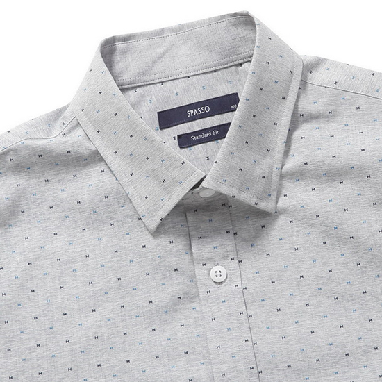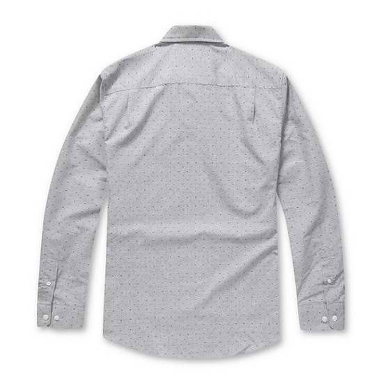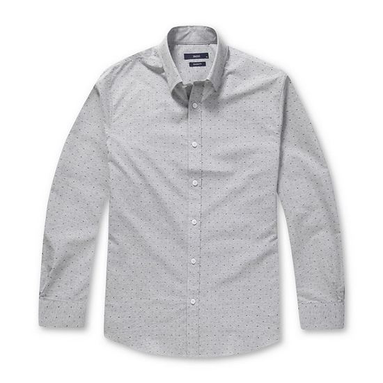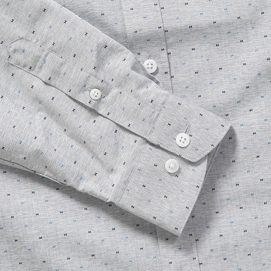 - 잔조직 텍스쳐의 배색 올오버 패턴을 적용한 남성 셔츠.