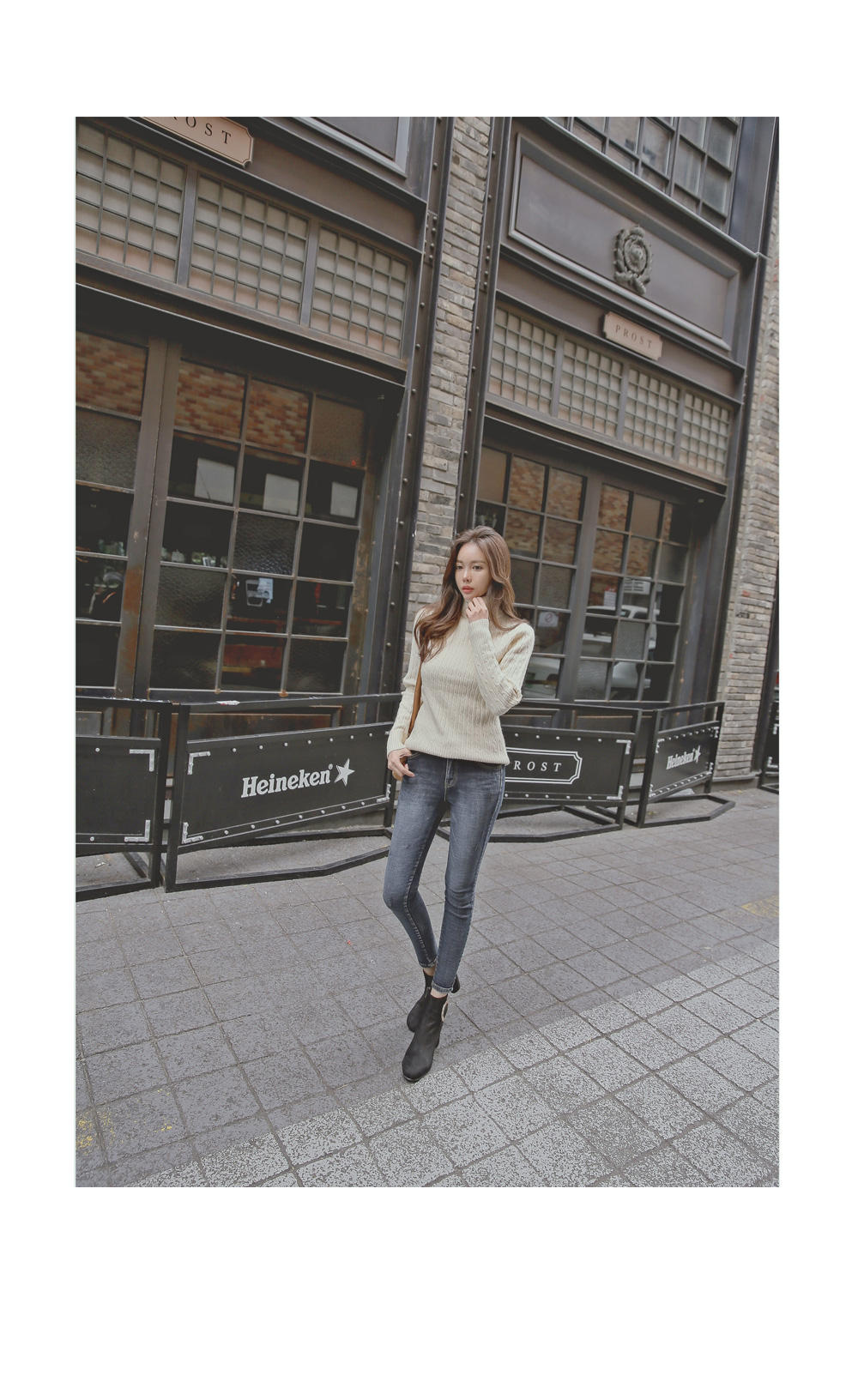 넥라인을 감싸주며 떨어지는 분위기있는 니트에요.