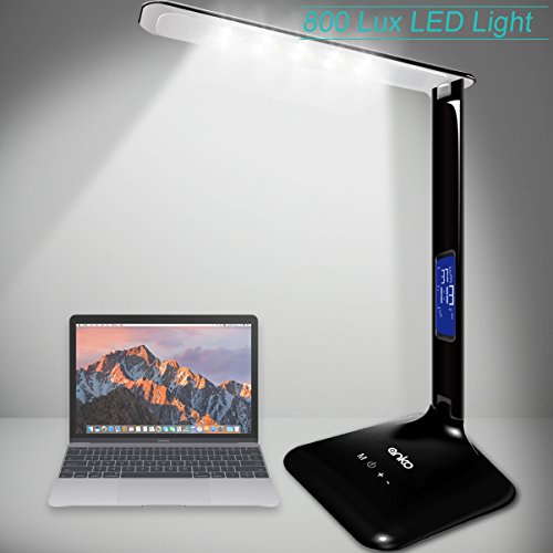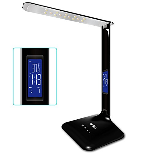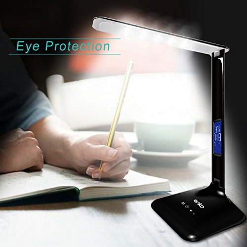 - 5 BRIGHTNESS LEVELS AND 3 LIGHTING MODES TO CHOOSE FROM. Each mode is calibrated to provide optimum lighting for each respective activity while reducing eye strain and fatigue. Whether you need lighting that stimulates concentration for studying or a softer glow for relaxation, this LED desk lamp does it all with easy-to-use touch control and provide on-flicking natural light. LCD screen display time, date and temperature . Set an alarm or time for your lighting with minimal desk clutter.