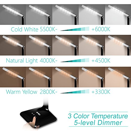 - ADMIRE AN ULTRATHIN AND LIGHTWEIGHT DESIGN, Simply lay a finger on the entirely touch- switch to choose the color and brightness you like. Memory function means you only need to set the brightness/color mode once, and it will automatically return to the setting when turned on next time. The LED desk lamp uses energy-saving LEDs that have a long-term lifespan, no “old bulbs” anymore, saving time and money.