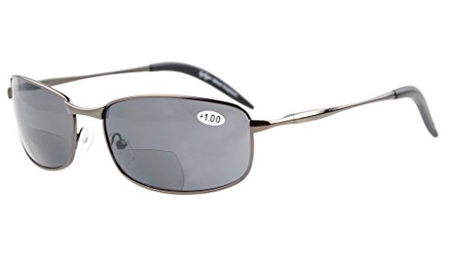 EYEKEPPER METAL FRAME BIFOCAL SUNGLASSES-Included a microfiber cloth and case.UV 400 Protection Scratch Resistent Coated Lenses,Polycarbonate Lenses and Optically Correct.Spring-hinged temples, help glasses fit your face.Bifocal part is flat outside of the lens,not same the normal bifocal.