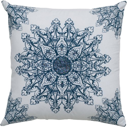 Rizzy Home T05018 Applique and Sequin Details Printing Decorative Pillow, 18 by 18-Inch, White