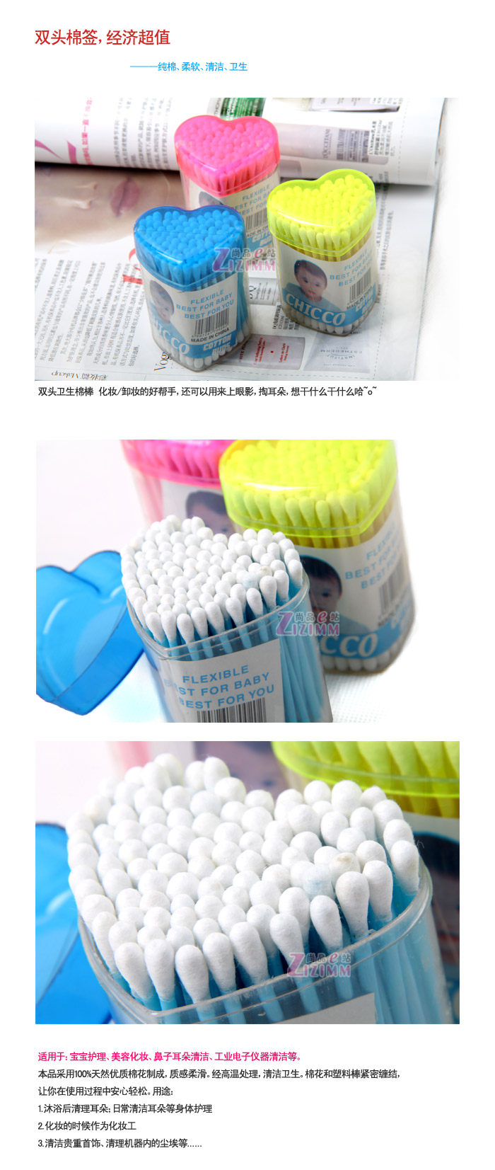 Heart small boxed double-headed swab swab