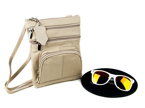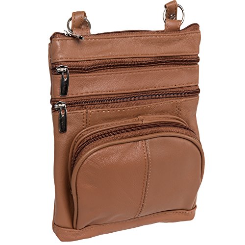 This genuine leather women's crossbody bag is great for the woman on-the-go. With 4 outer zip pockets you can easily access all of the things that you hate digging for. The front zip around pocket has an organizer with 3 slots and an ID window. The roomy interior has one main compartment that is lined and the bag closes with a zipper. Comes in a variety of different colors.Feature