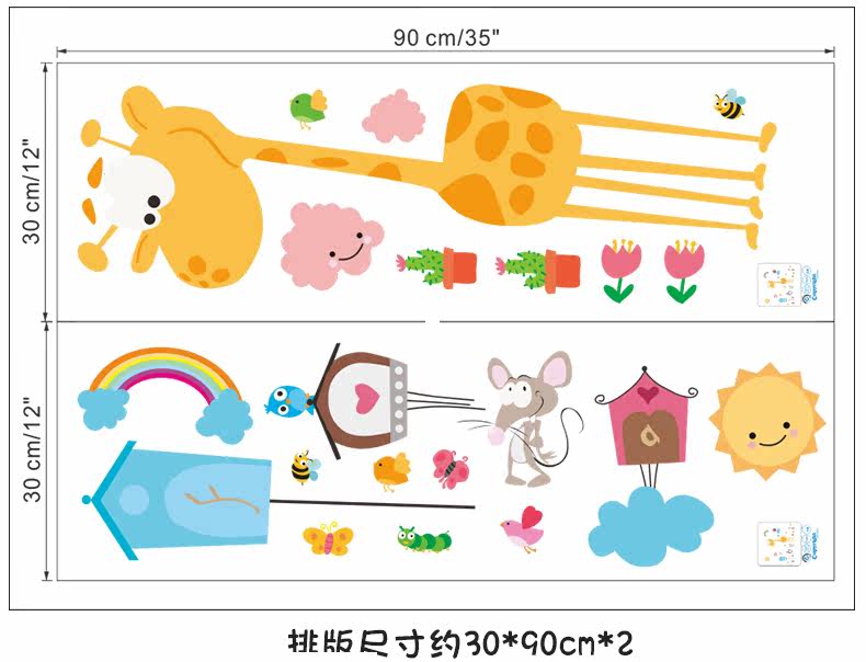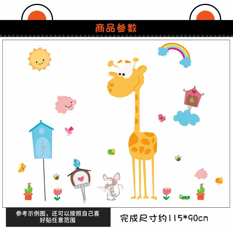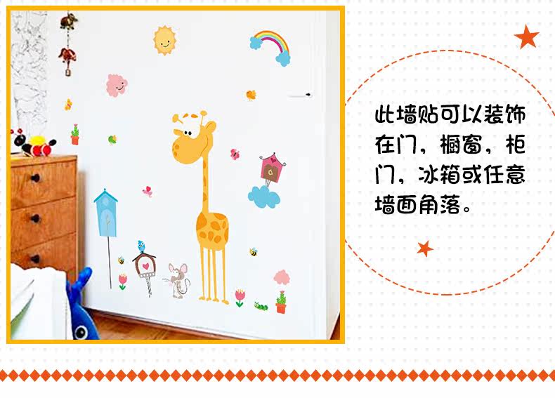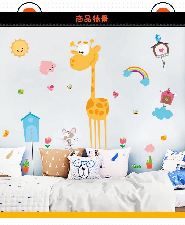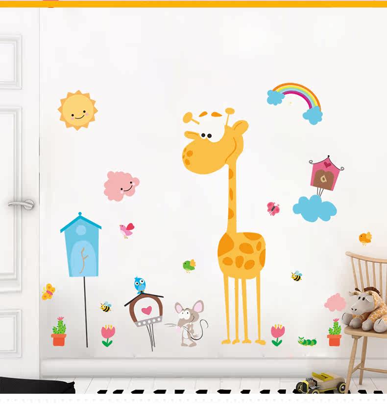 儿童卧室幼儿园教室背景墙装饰贴可爱卡通长颈鹿环保可移除墙贴画