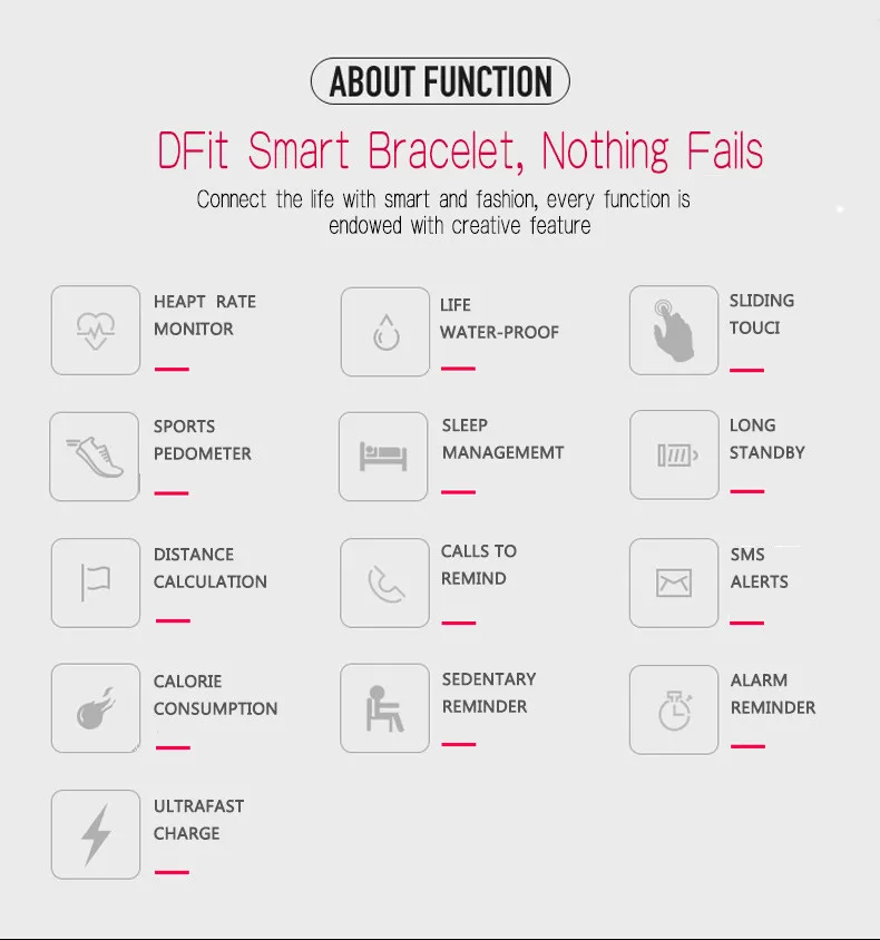 Features:Fitness Tracker,Sleep Tracker,Message Reminder,Call Reminder,