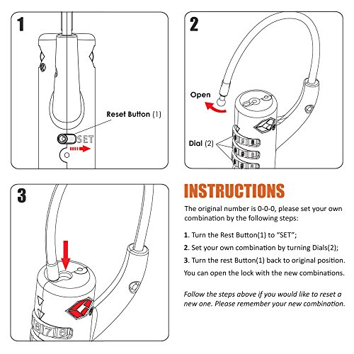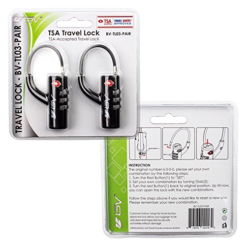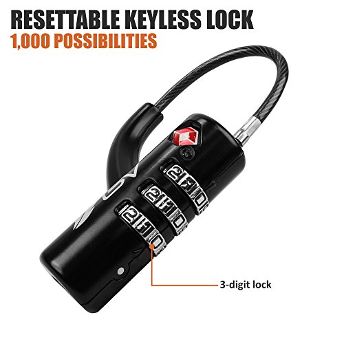 -. Feature : TSA Accepted - Can be unlocked and relocked by TSA agents without having to break the lock open. / No Key to Lose - The 3-digit resettable combination lock is easy to set and use. / Resettable 3-digit Combinations - Set a combination that you won't forget from 1.000 possible combination. / Prevent the Grab-and-go Theft - Keep your personal possessions, like tablets, phones or valuables, safe and secure in many situations. / 100% Satisfaction Guarantee - Backed by BV 30 days Money Back Guarantee with 3 years free replacement warranty.
