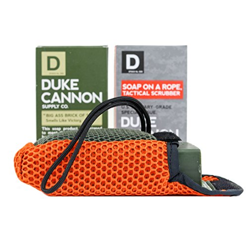 Studio : Duke Cannon Publisher : Duke Cannon Binding : Misc. Product Description Duke Cannon Soap On A Rope Bundle Pack includes (1) Tactical Soap Pouch (1) Big Brick of Soap. // Duke Cannon never drops his soap. The Tactical Soap on a Rope Pouch is an ideal companion to Duke Cannon Soaps. This U.S. Military-grade tactical soap pouch should be standard issue for every shower. To maximize hygiene in tactical situations, this equipment is engineered with a course mesh to scrub your hands and feet, and a softer mesh for less rough areas. With a 500 Mil-Spec Paracord Strap. Keeps soap off the ground and in your reach. // True to its name, our soap is big (10 oz.) and will last much longer than the dainty little bars in your local grocery. It also smells awesome and contains steel cut grains for maximum grip and exfoliation. If you enjoy activities like drinking American beer or using power tools, then frankly, this is the only soap meant for you. 0