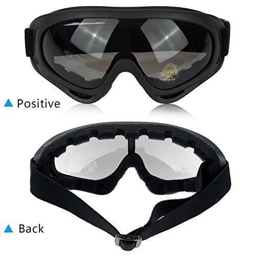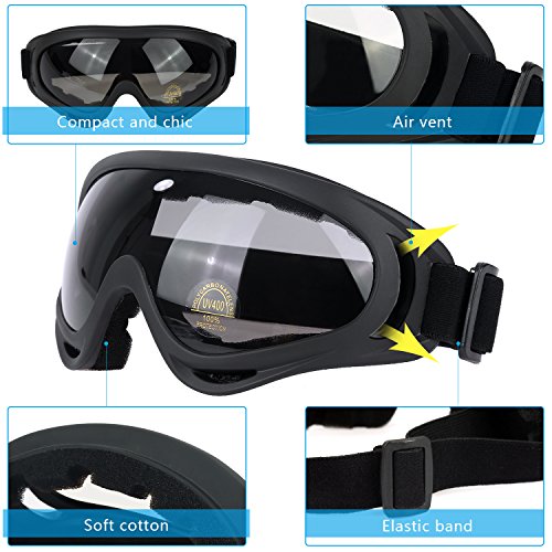 -. Feature : UV PROTECTIVE - UV400 protection PC lenses, well block out the harmful ultraviolet light, reduce light intention, and remove object and road reflect stray glare / ELASTIC BAND - Excellent lightweight, high elastic sponge wear comfortable, no pressure, you could adjust as you like that fit for any person, elastic headband strap is adjustable and skidproof, both men and women to wear / USED IN ANYWHERE - Protective goggles safety glasses, perfect for skiing, riding, resting, shooting, jogging, driving, fishing, climbing, riding and motorcycle, and design to protect your eyes from wind, dust, water, snow, sunshine and hard light / LENS COLOR - Multi color, it has a multi-layer coating and can absorb the purple, cyan light. Suitable for Daytime Wearing / GUARANTEE - If you are not satisfied with the ski goggles just return them within 30 days for a full refund. No questions asked, no hassle. Scroll up to click the Add to Cart button to have your product shipped today