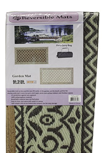 Reversible mats can be used for your RV patio, in the garden, on the beach, perfect for placing under pets exercise pens and cages, picnic and various Indoor and Outdoor spaces. 100% virgin polypropylene material makes a durable mat Breathable material does not hurt grass UV protection against sun exposure Easy clean, just spray with water or sweep. Light weight and can be folded into a very compact size for easy storage Size: 9' x 12'Feature