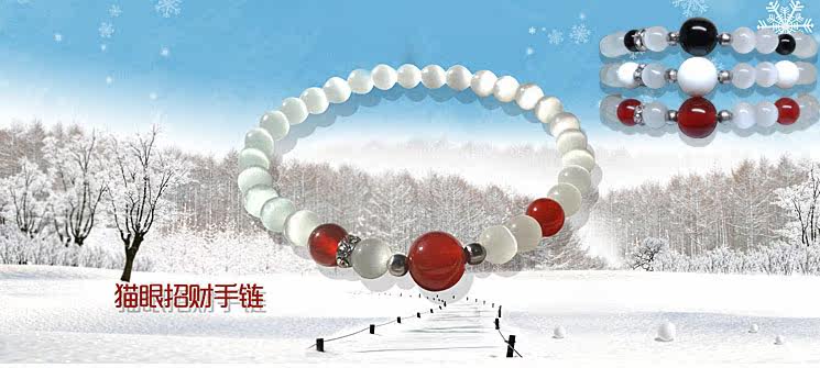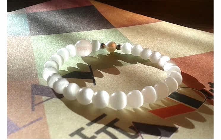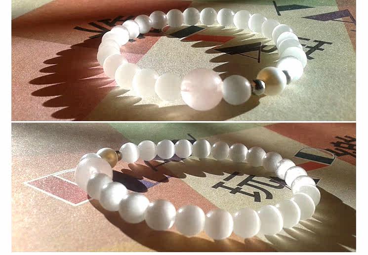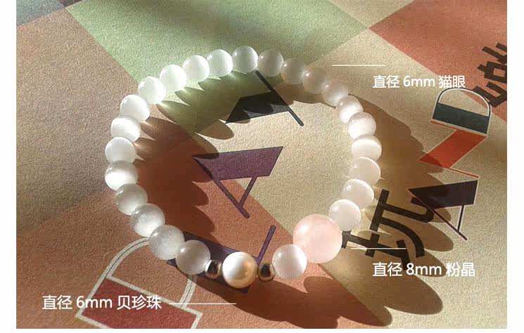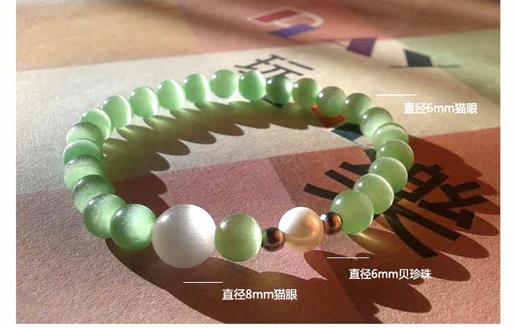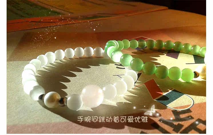 白绿猫眼天然深海贝珠水晶手链女手串韩版时尚饰品情侣首饰