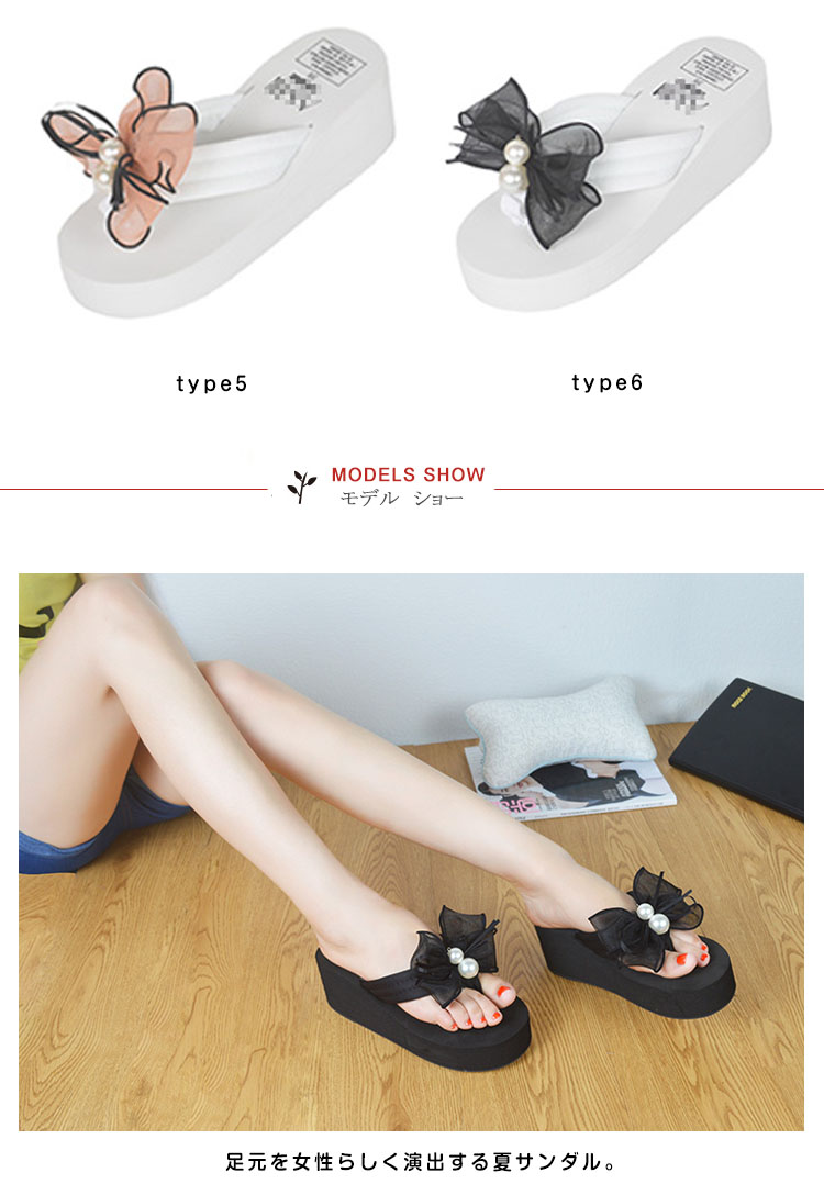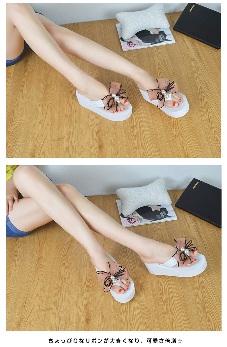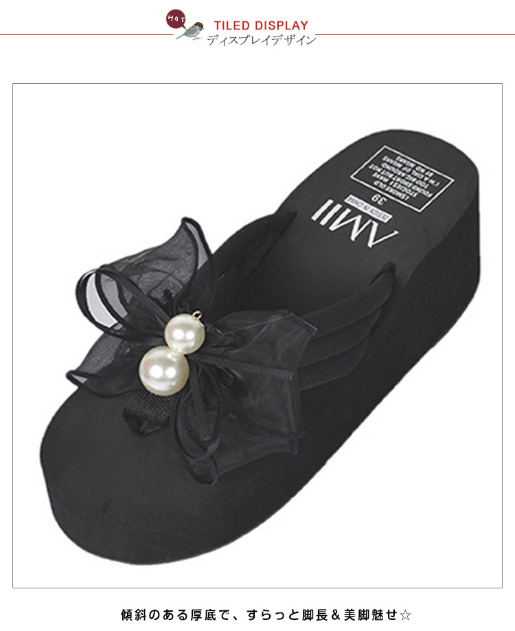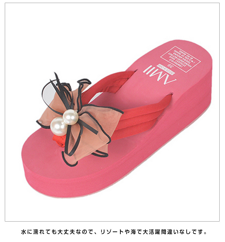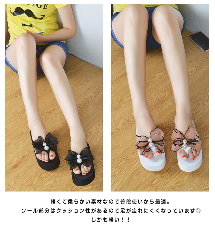 | フロントのリボン&パールがチャームポイント◎足元を女性らしく演出する夏サンダル。ちょっぴりなリボンが大きくなり、可愛さ倍増☆軽くて柔らかい素材なので普段使いから最適。ソール部分はクッション性があるので足が疲れにくくなっています◎しかも軽い!!傾斜のある厚底で、すらっと脚長&美脚魅せ☆水に濡れても大丈夫なので、リゾートや海で大活躍間違いなしです。 | |