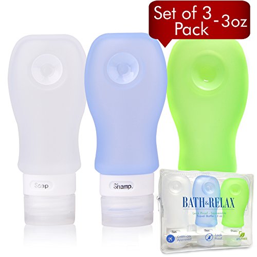 Large Travel Bottles Leak Proof 3 oz Set of 3 TSA Approved For Carry on Luggage, Squeezable & Refillable Silicone with Bag, Travel Size Toiletry...