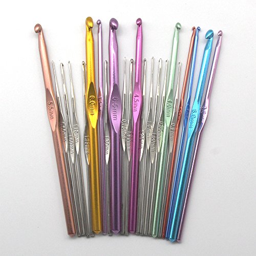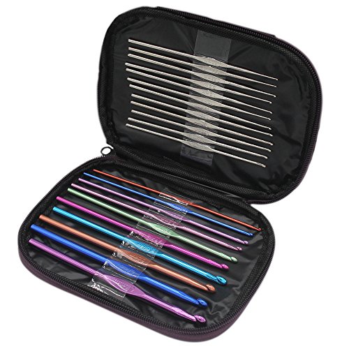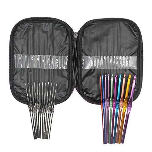 XStudio 22pcs Aluminum Handle Multicolor Crochet Hooks Weave Knitting Needles Gift Set, 0.6-6.5mm