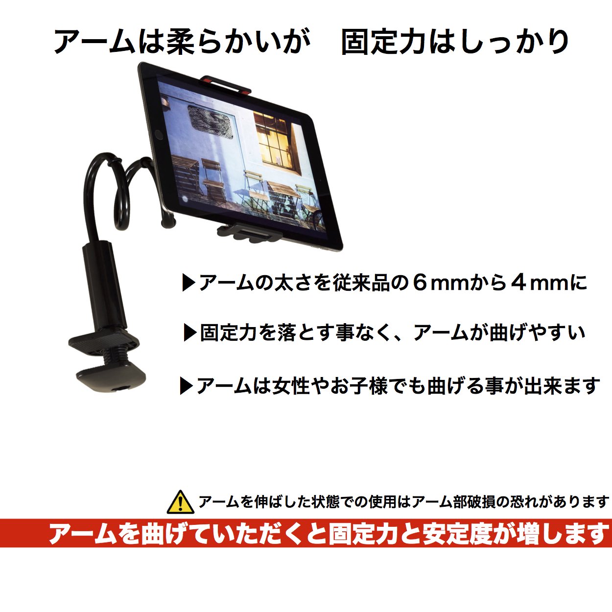 可能 There is a possibility that damage to the arm or breakage of the equipment may occur as a load is applied to the arm part if the arm is used with it stretched.