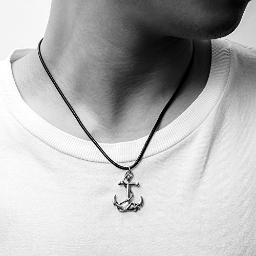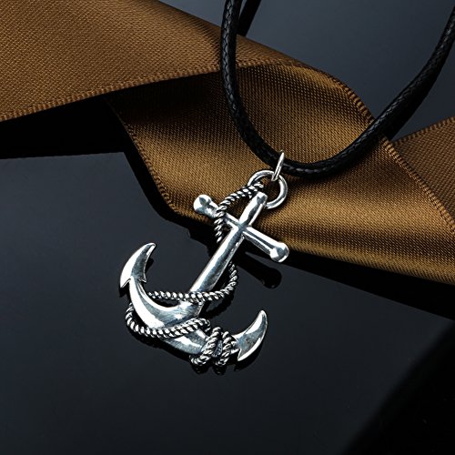 -. Feature : 925 sterling silver pirate pendants anchor necklaces and chain with white gold for men ship wheel long nautical anchor sailor jewelry gifts / Material:925 Sterling Silver, Silver oxidation. / Pendant Size: 26.1*35.1*4.4 mm,Weight: 7.88 g, Necklace Chain Size: 2.0 Wax rope length 51 CM + 9 CM lobster buckle. / Perfect Gift: Graduation, Halloween, Thanksgiving, Birthday, Christmas and so on. / MANBU Advantage: has its own independent factory, professional designers and superb craftsmanship.Mainly to produce high-quality fashion silver jewelry, anti-allergic, lead-free nickel, etc., when you wear, you will become more charming, different in the crowd,the more long-term wear can make people more healthy and attractive.
