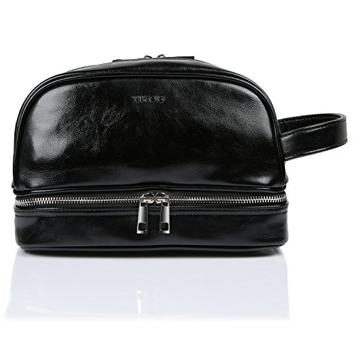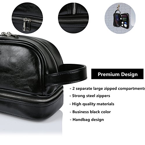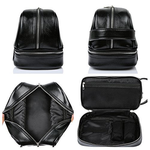 PU Toiletry Bag Men Travel Toiletry Organizer Shaving Dopp Kit For Business Trips (Black)