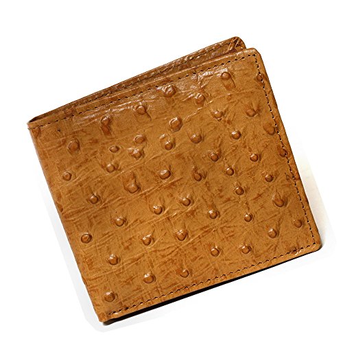 -. Title : 財布 メンズ 二つ折り オーストリッチ型押し 牛本革 キャメル