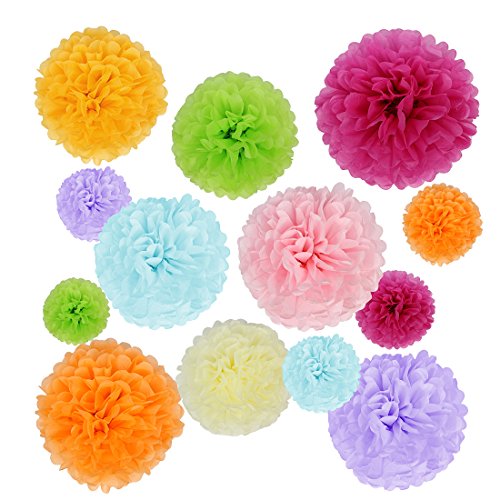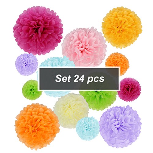 kilofly 24pc Wedding Crafts Tissue Paper Pom Pom Flower Color Party Decoration