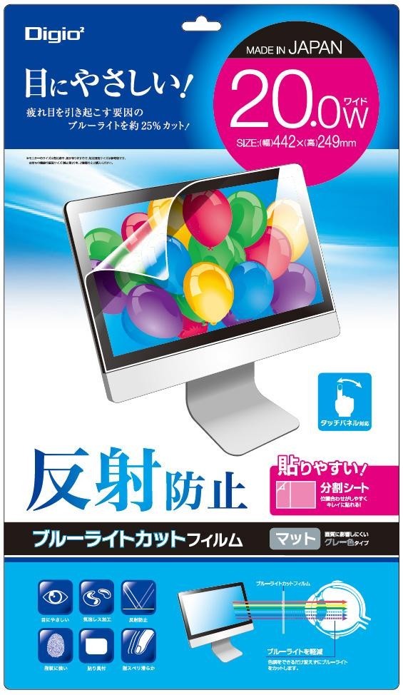 | 仕様 | 対応サイズ:20.0インチワイド(幅442×高さ249mm) ブルーライト約25%カット 光線透過率:79.5%以上 タッチパネル対応 |