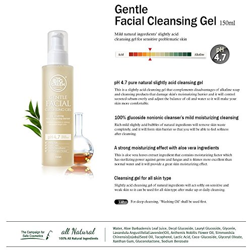 Big Green Gentle Facial Cleansing Gel 5 fl oz.-Natural Safe Gentle-Deep Cleansing-Hydrating-Calming-All Skin Types-Sensitive & Irritated Skin-Problem Skin-Non Drying