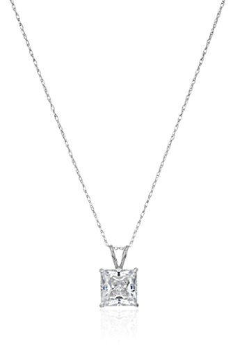10k gold necklace with princess-cut Swarovski Zirconia stone suspended from rabbit-ear bail