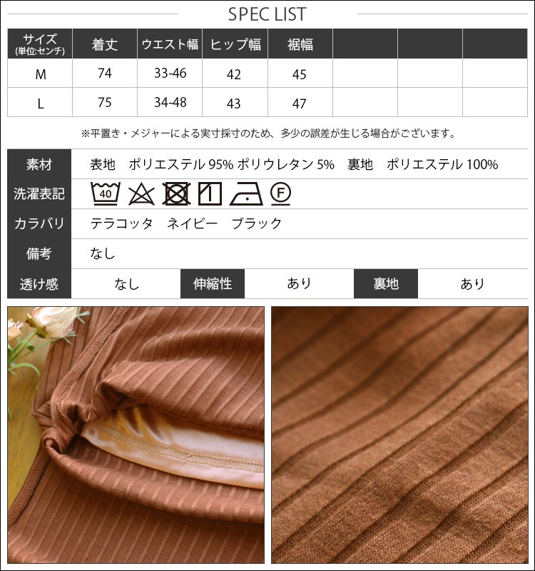 L:着丈 75cm ウエスト幅 34-48cm ヒップ幅 43cm 裾幅 47cm