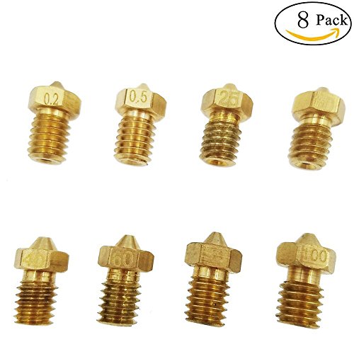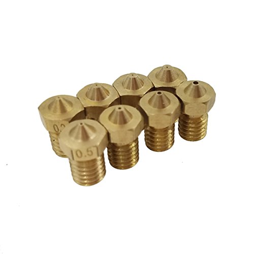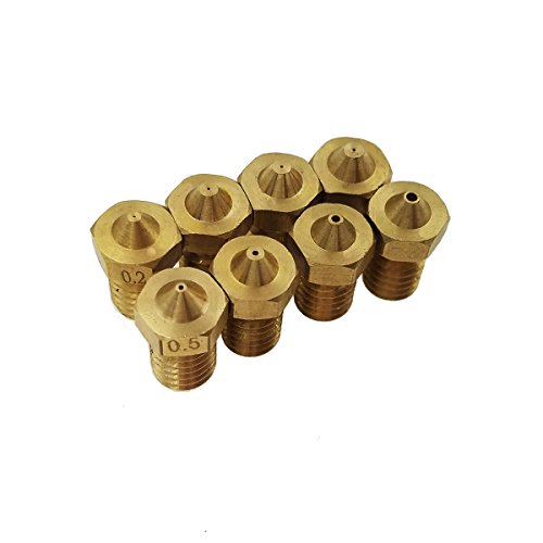 M-jump 3D Printer Head E3D Nozzle ,8 pack M6 3D Printer 0.2-1.0mm Extruder Brass Nozzle Print Head for E3D Makerbot