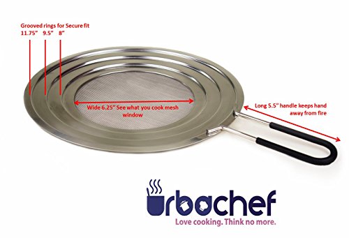 - Title : UrbaChef Splatter Screen for Frying Pans and Pots - 11.75" Premium Grease Splatter Guard Prevents Burns and Ensures Tidy Kitchen - Stainless Steel Fine Mesh With Ergonomic Silicone Covered Handle