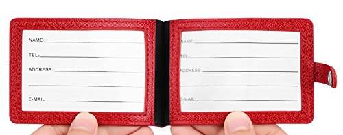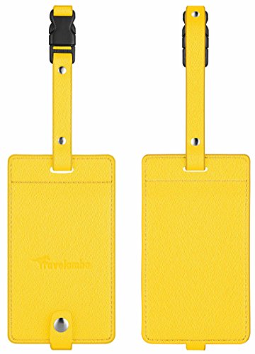 -. Brand : Travelambo -. Feature : 100% synethic leather (PU) lage tag with crosshatch patterns; / medium size ( 5" X 4 3/4" X 1/4" ) with two hidden address cards, fit in perfectly any standard size business card; / easy BUCKLE UP plastic buckle for convenient closure; / strong and durable design and material to keep your lage safe during any long distance journey; -. Model : tra1200 -. PackageQuantity : 2 -. ProductGroup : Apparel -. ProductTypeName : LAGE -. Title : Travelambo PU Leather Lage Tags & Bag Tags 2 Pieces Set in 8 Colors