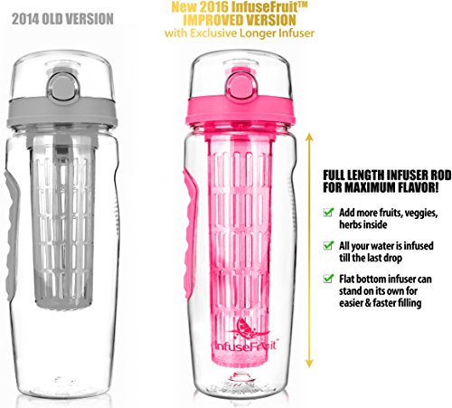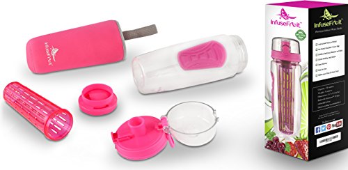 - Feature : ✔ ENJOY DRINKING HEALTHY: large 32oz capacity and full length infuser basket for increased flavor till the last drop, drinking water has never been so tempting! With your delicious infusion packed with vitamins and nutrients next to you, you will easily adopt a healthy hydration habit proven to increase your energy level, facilitate weight loss, detox and feeling rejuvenated! / ✔ NO SWEAT & COOLER: unlike others all InfuseFruit bottles come with their own sweat proof insulative cover. Say Goodbye to condensation which can potentially create a mess in your carry bag and say Hello to your fruit infused water staying deliciously fresh at least 50% longer! / ✔ SAFE & SIMPLE TO USE: built with sturdy premium eco-friendly Eastman Tritan, 100% BPA free, your bottle can be used and reused safely by everyone adults like kids. Cleaned easily in 1 minute, spend more time experimenting with all the delicious recipes included in your free Starter Guide eBook. / ✔ SMART & STYLISH DESIGN: easy to carry in backpack pocket or using extra convenient carry handle. Special fitted grips on both sides for a more comfortable and secure handling. Flip top Lid give you instant access to your infused water, large capacity reducing refilling needs, fits most car holders, 2-in-1 just remove the infuser and you have a nice sport bottle. Ideal for gift, why not buy another one for a friend or family member? Get ready to receive plenty of compliments! / ★ YOUR SATISFACTION GUARANTEED ★ We are so sure you will ly love your bottle that it comes with a lifetime satisfaction guaranteed: if for whatever reason you are not ly 100% thrilled by your infuser, we will refund or replace it, no question asked! Included also are instructions on how to download your free Infused Water Starter Guide & Recipes eBook. Kick-start your healthy habit easily and order your awesome bottle risk-free NOW!