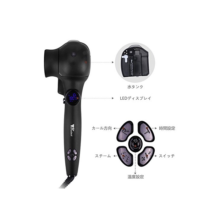 Amzdeal 오토 카루 헤어아이런(고데기) 카루 아이런 steam 아이런 8 초자동 감기 카루 방향 조절 가능 시간 설정 온도 설정 110v-240v 해외 대응 자택 여행 데이트