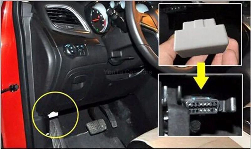 Directly plug the module on the data test port (OBD) at the bottom-left of instrument desk,