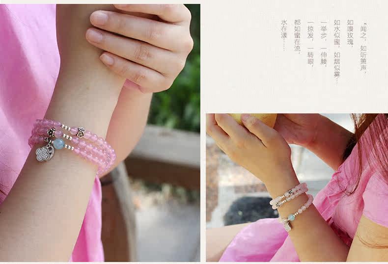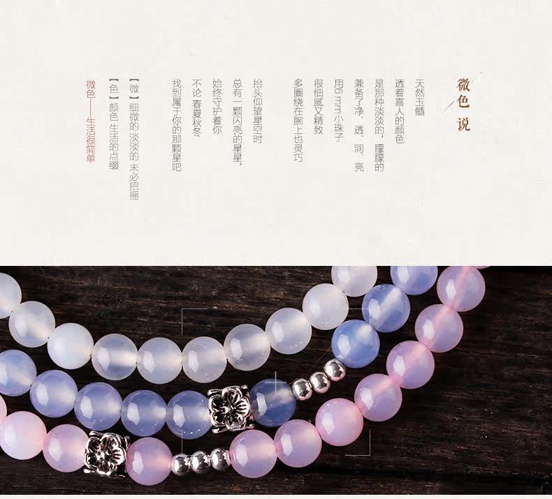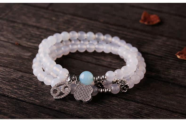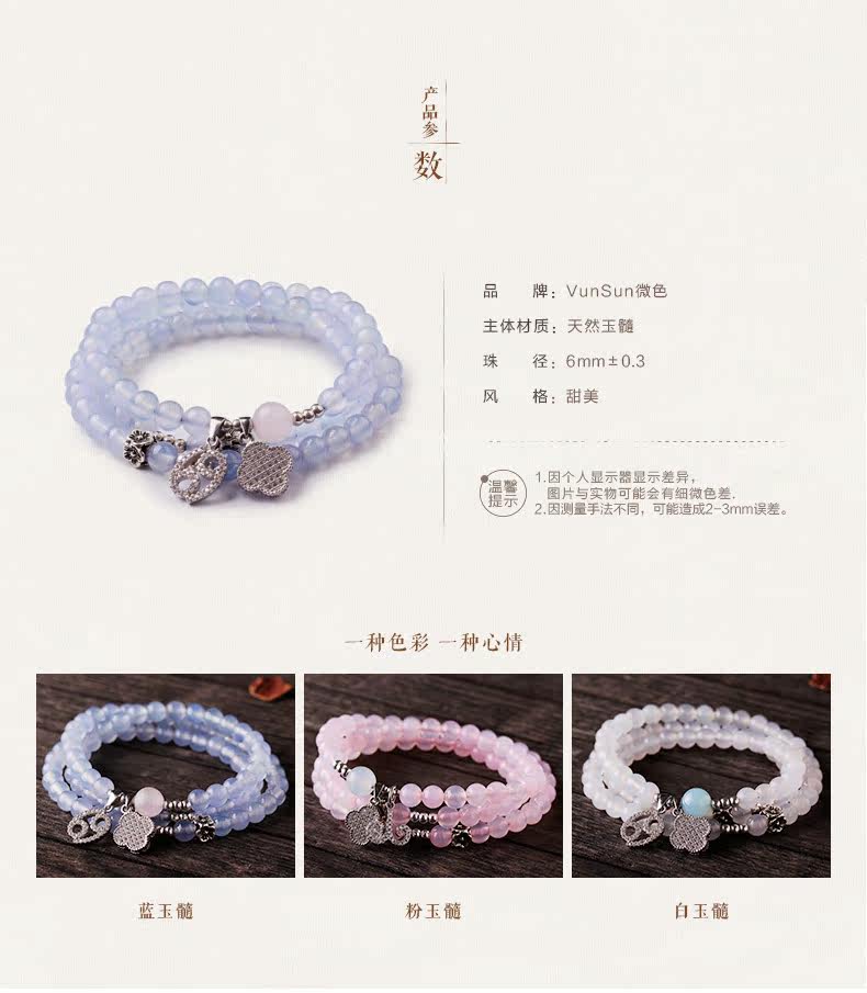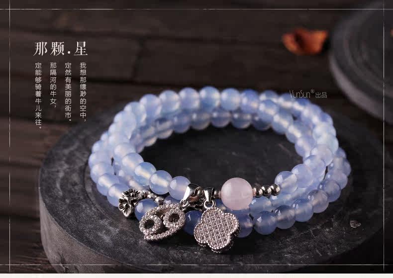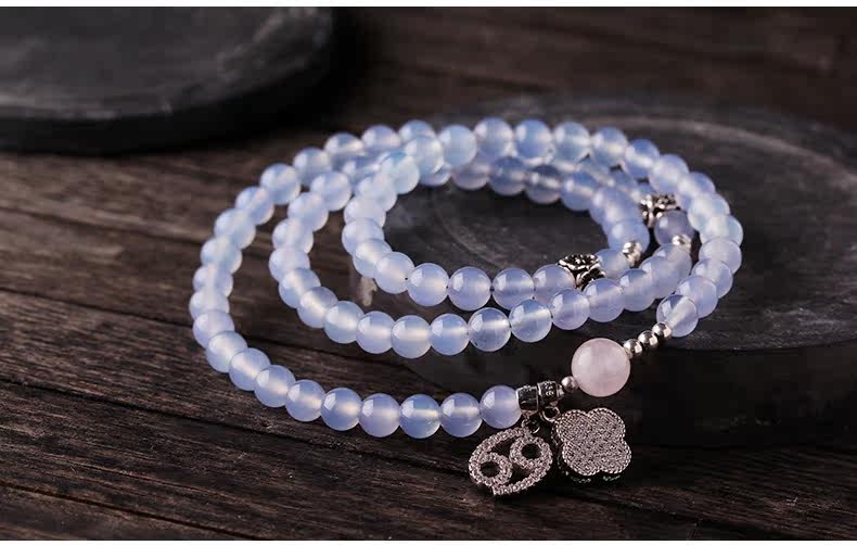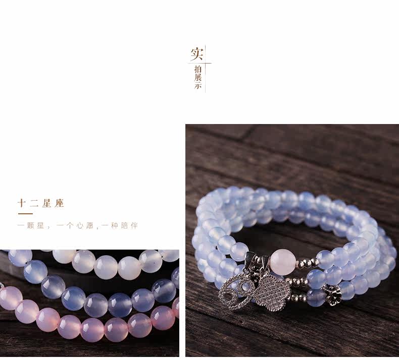 白玛瑙手串粉玉髓手链女韩版星座多层多圈缠绕蓝玉髓饰品