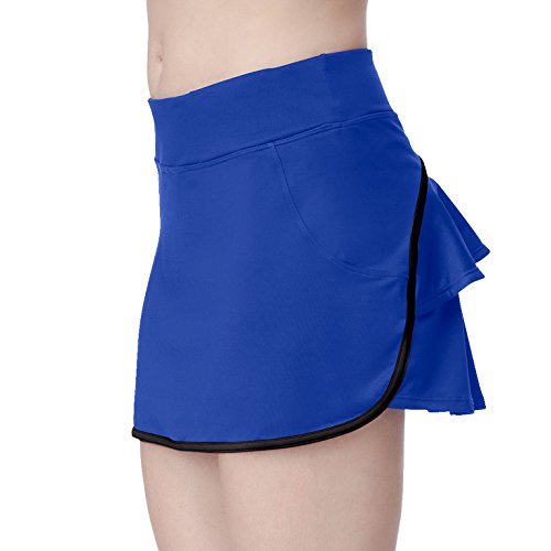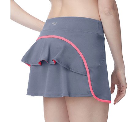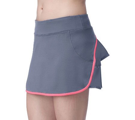 Binding : Apparel Product Description Two-layer skirt upper with rouching at the back and shorts underlayer. Moisture wicking properties push perspiration away from the body and towards the surface for rapid evaporation. Elastic waist provides a comfortable fit. Brand hit at middle back waist. 88% polyester, 12% spandex. Machine wash cold, tumble dry low. Imported. 0
