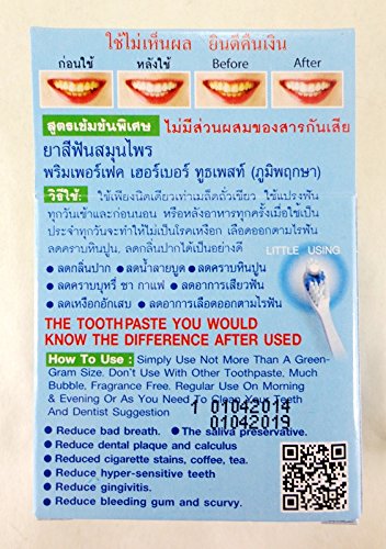 Herbal Whitening Toothpaste for Healthy Teeth Prim Perfect Reduce Plaque, Prevent Tooth Decay, Protect Teeth From Smoking 0.88 Oz. ( 25 G )