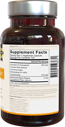 High Potency - Each capsule provides 500mg of patented Curcumin C3 Complex®, also featuring 5mg of active BioPerine®.