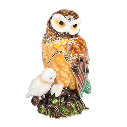 Jeweled Owl with Baby Owlet Rhinestone Trinket Keepsake Box Figurine