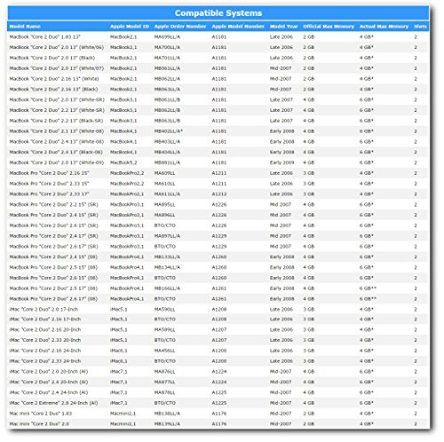 - Designed For iMac, MacBook Pro Models:Early 2008 Mid 2007 Mid-2007 MA876LL MA877LL MA878LL MA897LL/A MB133LL/A MB134LL/A MB166LL/A A1224 A1225 A1229 A1260 A1261 iMac7,1 MacBookPro3,1 MacBookPro4,1
